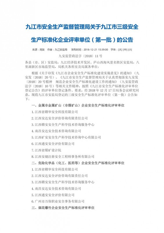 江西省應急管理廳辦公室關于印發(fā)安全評價檢···
